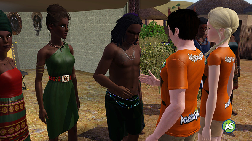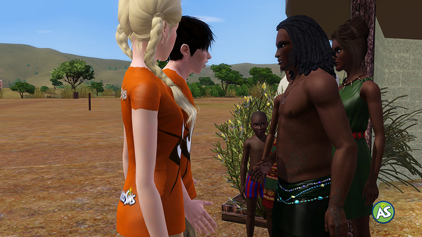 Astrid Manzetti: Tribu de los Imara, desde aquí y de parte del programa os agradezco vuestra hospitalidad. Yo y el equipo de SimSupervivientes también queremos agradeceros que hayáis aceptado mostrarnos vuestra cultura y costumbres y que vayáis a transmitirlas a nuestros concursantes. Especialmente quiero agradecerte a ti, Wakuumu, líder de los Imara, tu buena voluntad y el buen acogimiento que hemos recibido por tu parte.